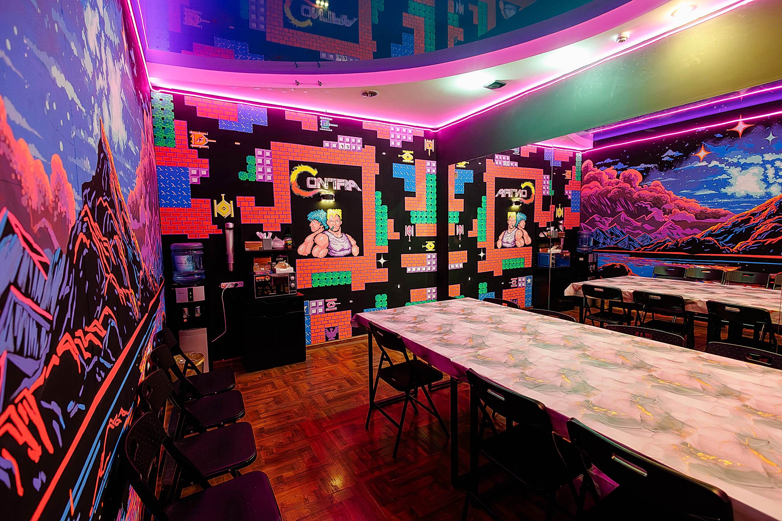 «Комната Аттракционов »зал с различными игровыми аттракционами. Вас ждет- настольный керлинг(шафлборд), пинбольный Pin Up настольный футбол, аэрооккей, шлемы виртуальной реальности, лазерный тир, космический баскетбол и аркадный игровой аппарат. так же на локации возможно играть в игру пол это лава - на светодиодном интерактивном полу.